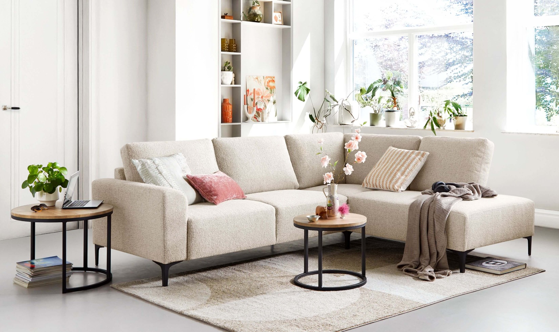 Model Garzeno is een strak vormgegeven, moderne hoekbank met een verrassend comfortabel zitcomfort. Dankzij de kubistische lijnen en tijdloze uitstraling past deze bank moeiteloos in diverse interieurstijlen. Met meer dan 100 stoffen en kleuren stel je jouw ideale bank samen – van onderhoudsvriendelijk microleder tot zachte bouclé. Door de vele elementen is werkelijk elke gewenste opstelling mogelijk.