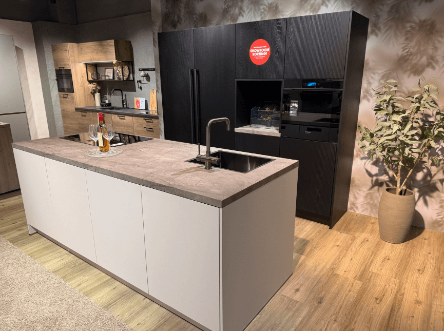 Sterk afgeprijsde showroom keukens! Bij Superkeukens Zutphen voegen we steeds nieuwe keukens toe aan onze collectie. Daarom wisselen we regelmatig de keukens die in onze showroom staan. De keukens die dan vervangen worden, kun jij vervolgens heel voordelig kopen. Helemaal compleet en inclusief apparatuur!